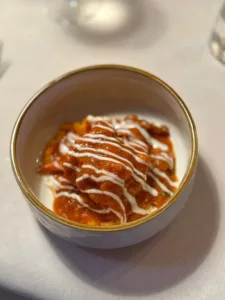 L’intento è quello di realizzare una cucina fine dining che celebra ingredienti semplici, ma straordinariamente ricchi, in grado di esprimere tutta la loro qualità senza bisogno di artifici. Si tratta di un percorso culinario che si affida all’eccellenza della materia prima, scegliendo prodotti umili, ma capaci di raccontare storie di tradizione e genuinità. In questo tipo di cucina, la raffinatezza non risiede nei tecnicismi complessi, ma nella capacità di esaltare la bellezza naturale degli ingredienti, valorizzandone ogni sfumatura di sapore. Senza dover ricorrere a espedienti, ogni piatto diventa una sinfonia di sapori puri, che emerge dalla semplicità e dall’attenzione meticolosa alla qualità.
