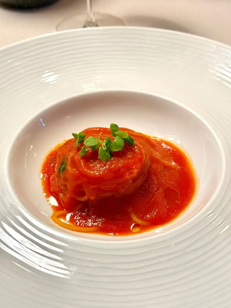La pasta, divenuta uno dei dogmi della cucina dello chef, spicca in ogni sua essenza. Di stucco dinanzi ad un semplice spaghetto al pomodoro fatto a regola d’arte, ecco servita la “devozione”. O ancora, toccherà stupirsi per i ziti mezzani alla Genovese, commoventi.