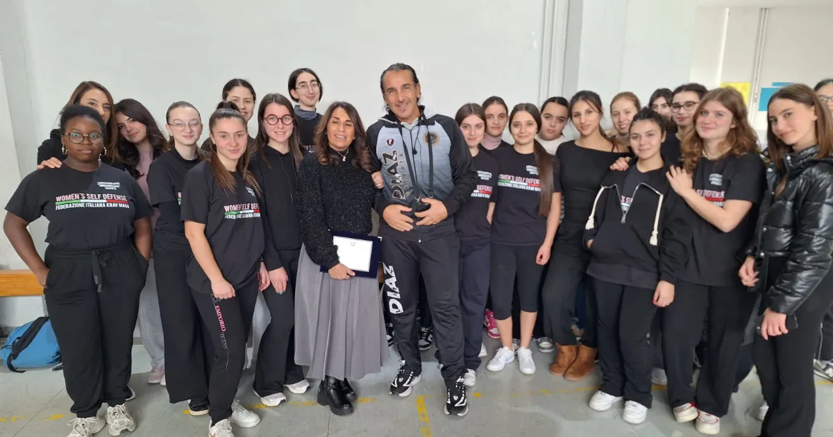 Caserta. Sono partiti al Diaz i corsi di difesa personale ispirata al Krav Maga destinati a circa 60 alunne del triennio con i professori Mena Aiello e Alberto Abbate istruttore della disciplina Krav Maga.