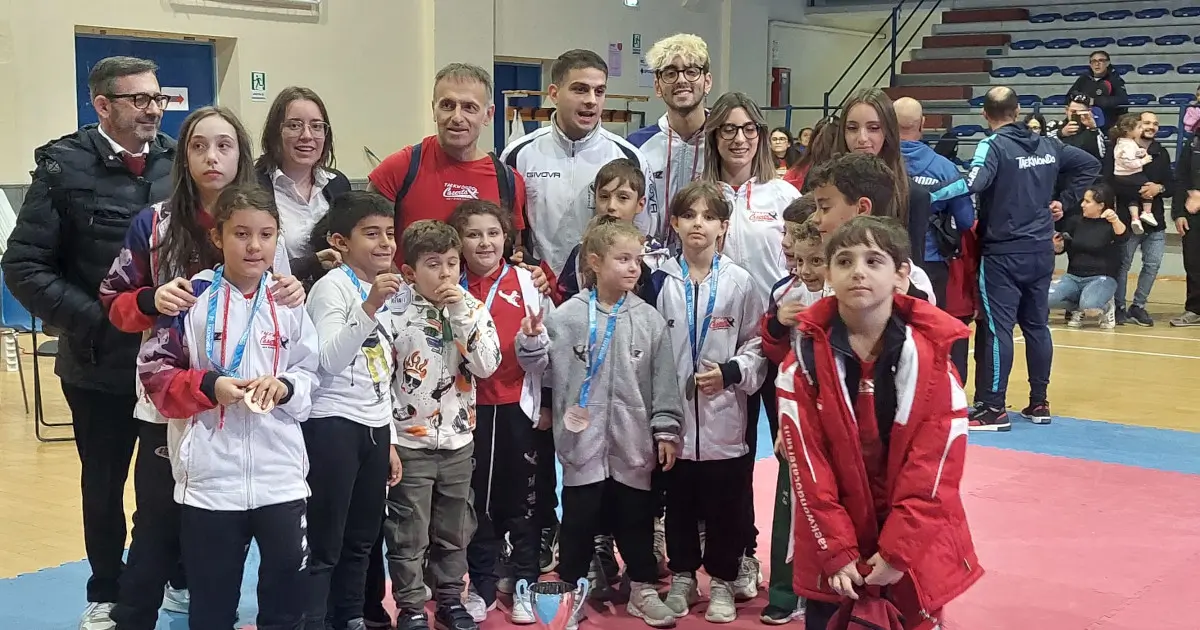 Caserta. Al palasport di Giugliano in Campania oltre 60 squadre di taekwondo e oltre 750 atleti provenienti da Campania, Puglia e Lazio si sono sfidate nel combattimento con i loro atleti più piccoli. Da Caserta la squadra del Maestro Fusco si presentava alla competizione con 24 mini atleti dai 6 agli 11 anni che hanno dato il massimo conquistando in due giorni 9 medaglie d’oro, 2 d’argento e 7 di bronzo classificandosi al 4° posto nella categoria children (8-9 anni) e in quella kids (10-11 anni).