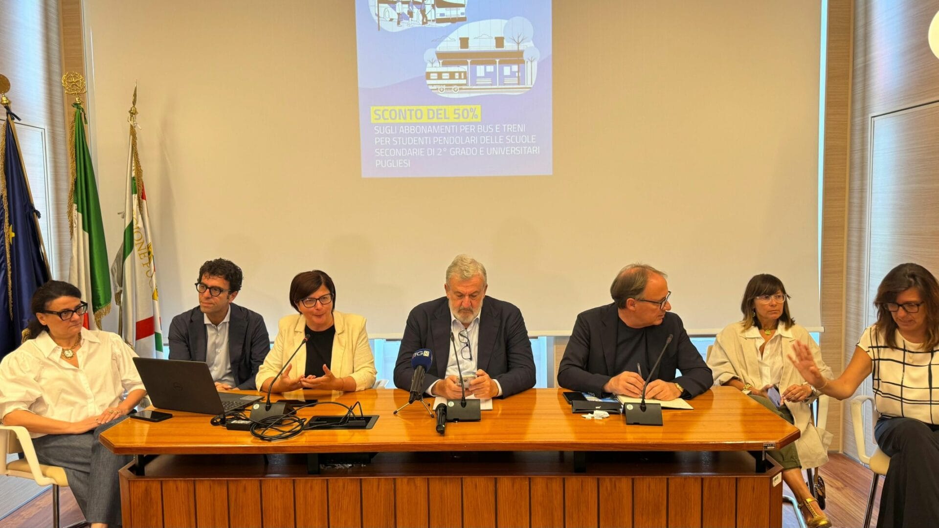 BARI (ITALPRESS) – Uno sconto del 50% sugli abbonamenti per bus e treni per gli studenti pendolari delle scuole secondarie di secondo grado e delle università pugliesi. E’ questa la misura presentata questa mattina nella sala di Jeso del palazzo della presidenza della Regione Puglia dal governatore Michele Emiliano e dagli assessori ai Trasporti e alla Mobilità sostenibile Debora Ciliento e all’Istruzione e Università Sebastiano Leo.