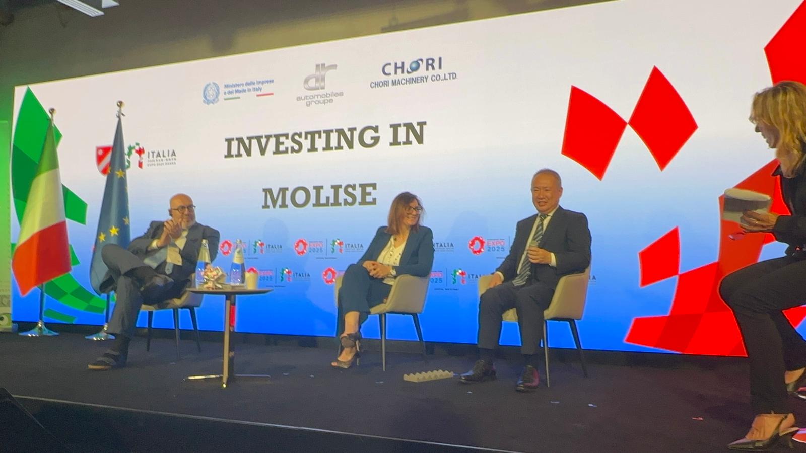 Presente Atsushi Ota, Director of Chori Machinery, realtà giapponese che ha illustrato la storia del rapporto instauratosi con DR Automobiles nel territorio molisano e rappresentativo delle sinergie virtuose tra Italia e Giappone. Dopo i saluti istituzionali di Mario Vattani, Commissario Generale per l’Italia a Expo 2025 Osaka, e del Presidente del Consiglio della Regione Molise, Quintino Pallante, l’evento è stato aperto da Andrea di Lucente in qualità di Vicepresidente e Assessore Sviluppo economico, Attività Produttive e internazionalizzazione delle imprese della Regione Molise che ha illustrato il ruolo della Regione nell’attrazione degli investimenti esteri sul territorio e l’offerta localizzativa regionale.
