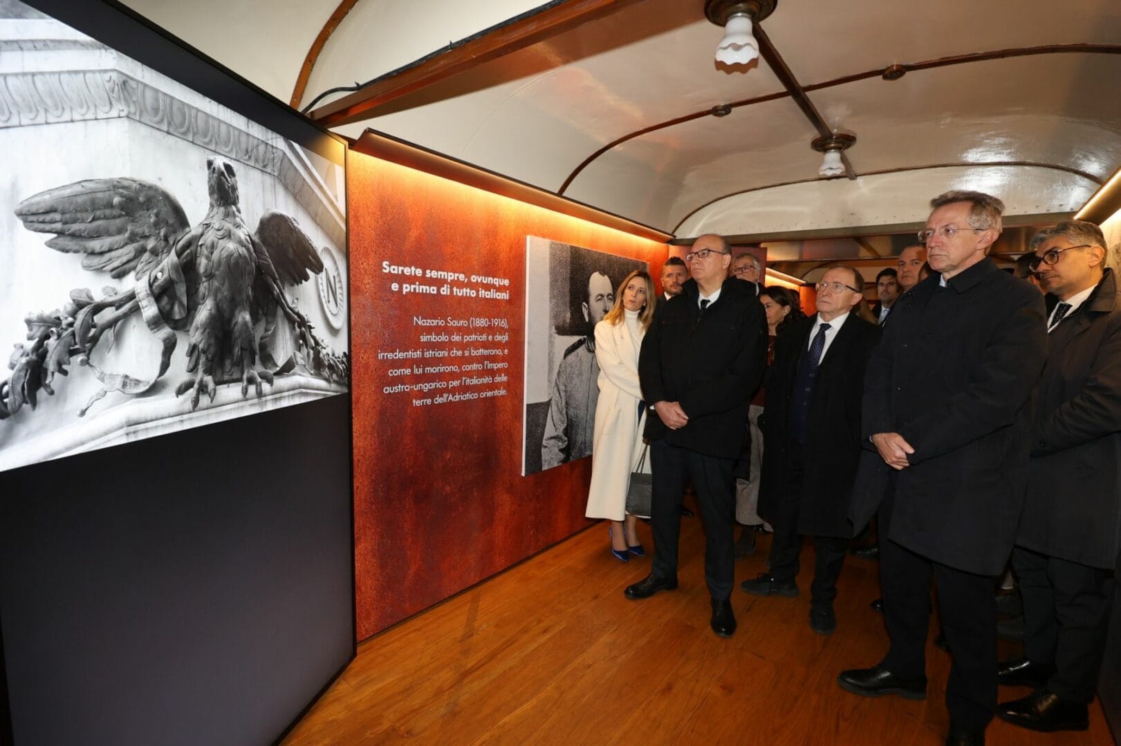 NAPOLI (ITALPRESS) – Una mostra itinerante a bordo di un treno ripercorre idealmente il viaggio compiuto dagli esuli istriani, fiumani e dalmati nel Dopoguerra per tenere vivo il ricordo di quei drammatici eventi e della tragedia delle Foibe. Il “Treno del Ricordo”, progetto promosso dal ministro per lo Sport e i Giovani Andrea Abodi, fa tappa a Napoli. Il convoglio storico messo a disposizione dalla Fondazione FS Italiane è giunto questa mattina al binario 14 della stazione Centrale dove rimarrà fino a domani per consentire a scolaresche e cittadini di visitare il percorso multimediale allestito in quattro carrozze. La visita inaugurale è stata preceduta dai saluti del sindaco Gaetano Manfredi, del vicepresidente della Regione Fulvio Bonavitacola e del ministro dell’Istruzione e del Merito Giuseppe Valditara.